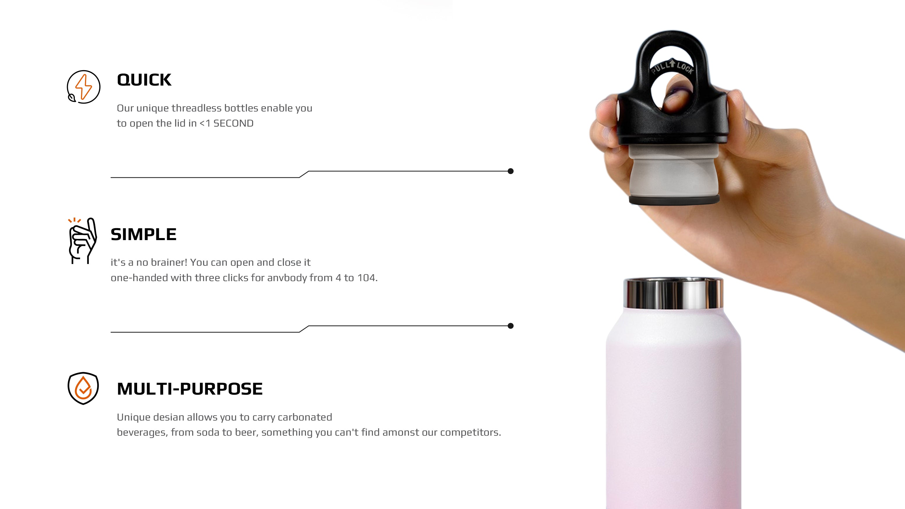 We’ve developed the quickest, simplest most secure bottles on the market.